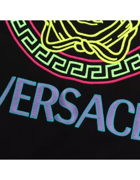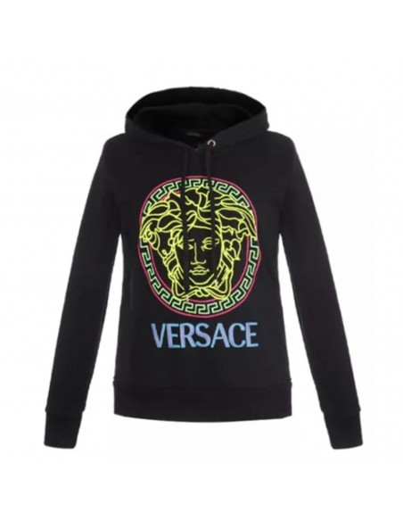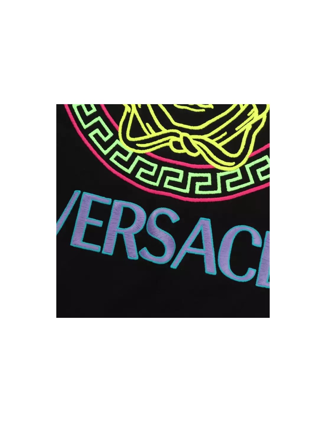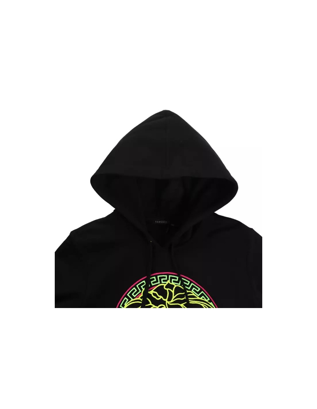 Felpa Versace con cappuccio, logo ricamato multicolor, cotone felpato 100%, polsini elastici, orlo elasticizzato
