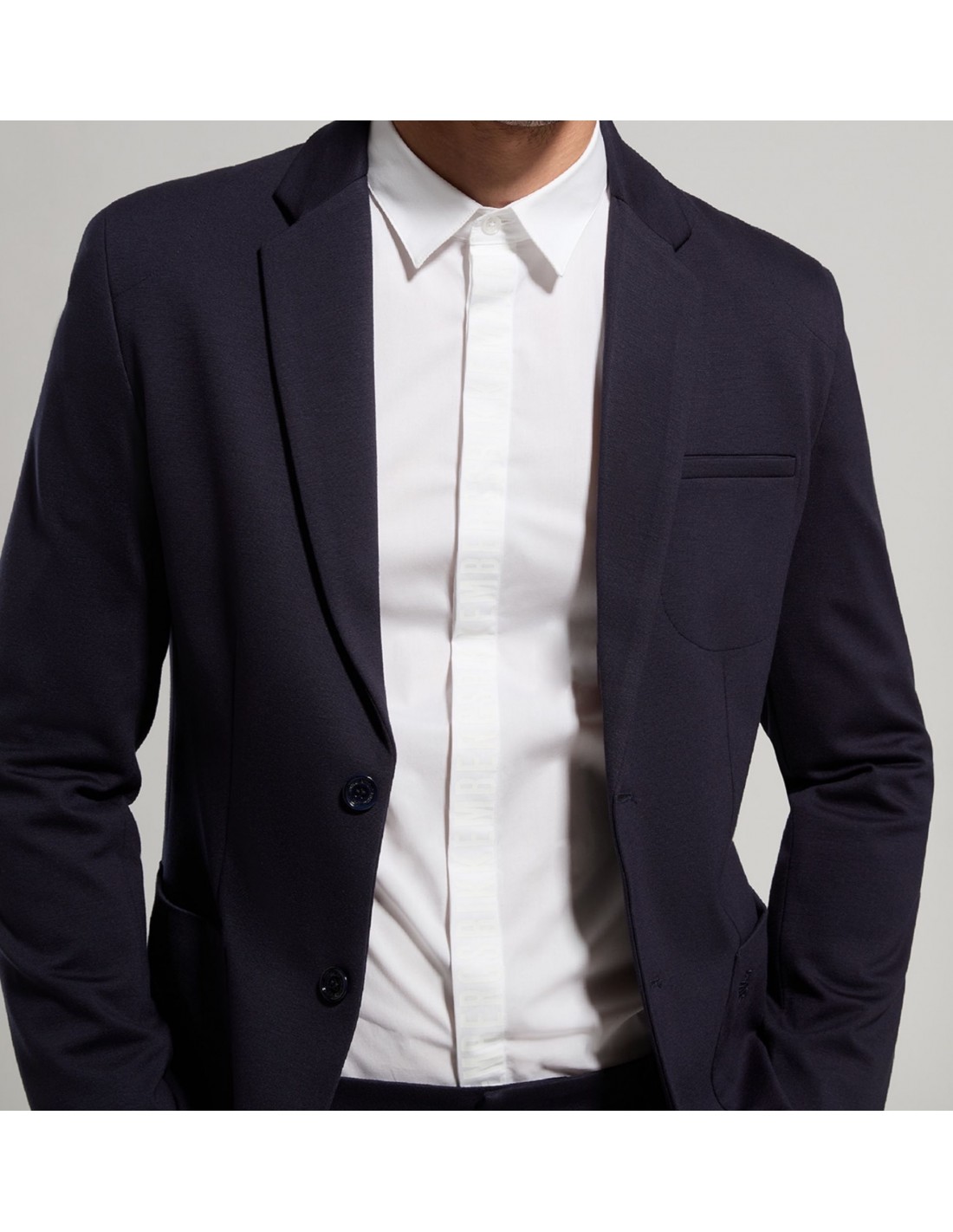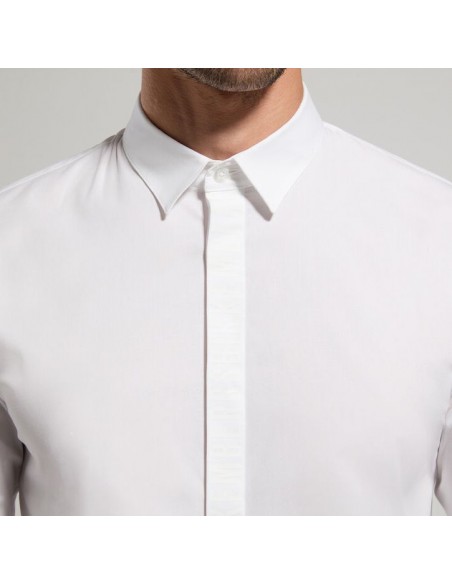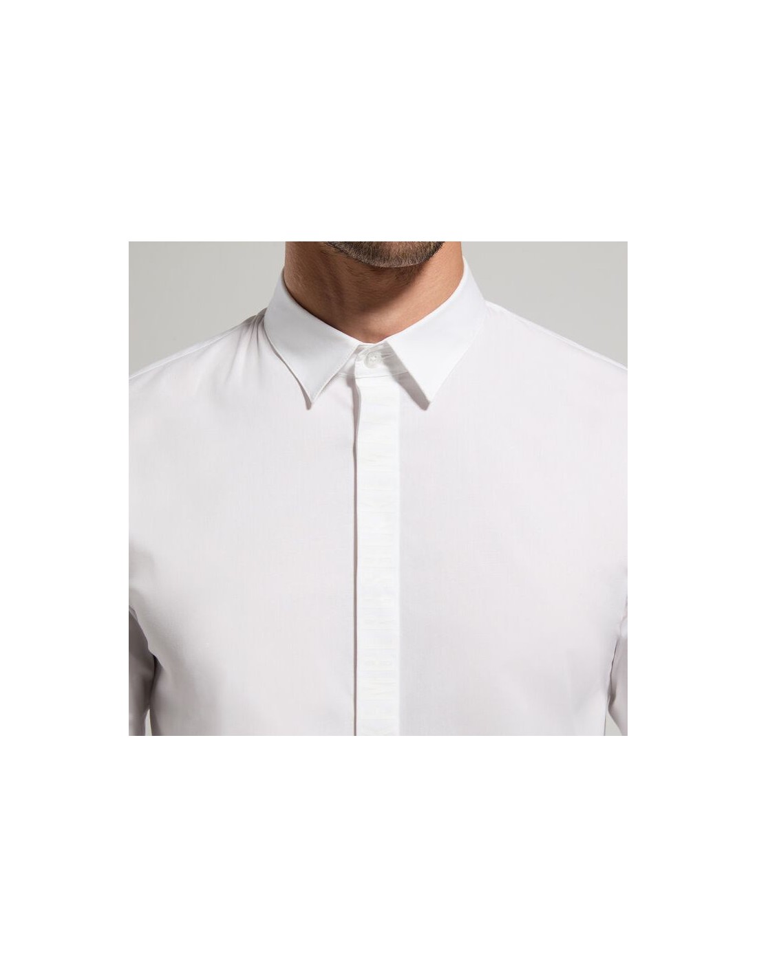 Camicia da uomo in popeline stretch con dettaglio stampato in tinta lungo la finta inglese, colletto classico e polsini con bottoni.