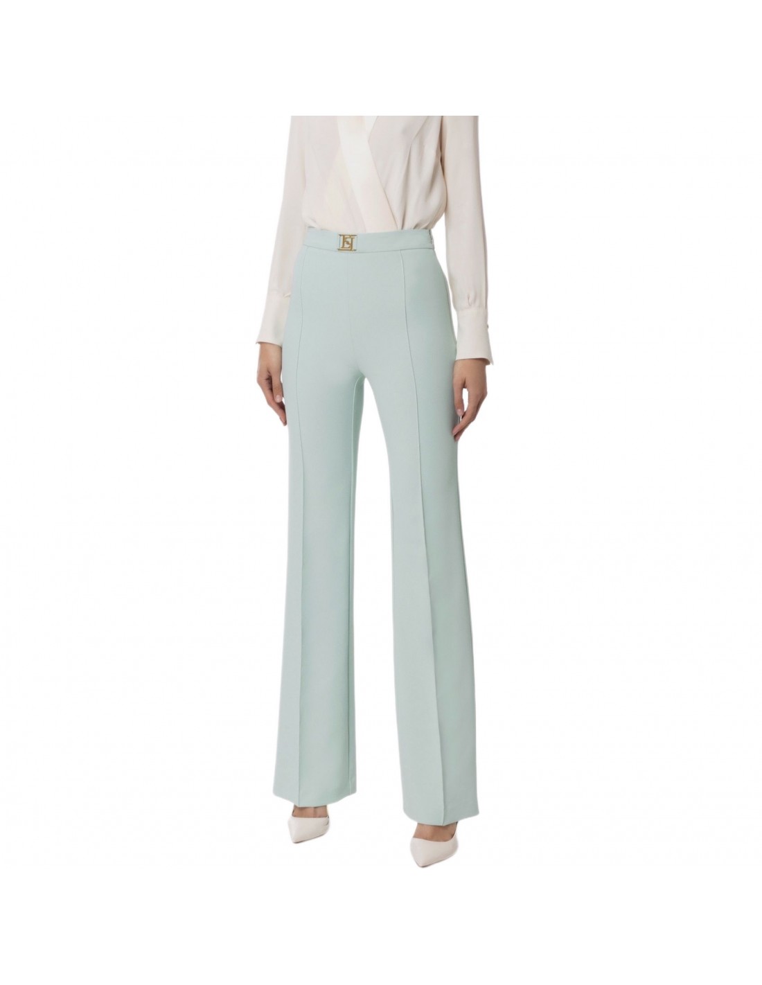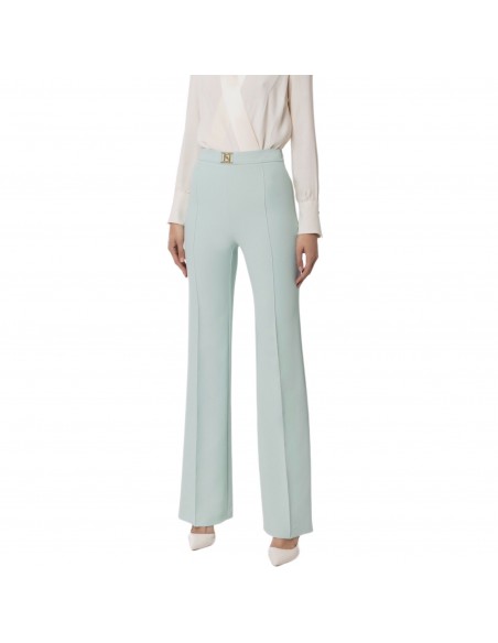 Pantalone palazzo in crêpe stretch                                   Pantalone a palazzo in doppio crêpe stretch. È caratterizzato da fascione impreziosito da passante logo in metallo dorato. Dettagli Sku: PAT1541E2 Zip invisibile sul fianco Accessorio in metallo dorato Lunghezza 115 cm per la taglia 40 IT La modella è alta 177 cm e indossa una taglia 40 IT  Composizione articolo 96% Poliestere 04% Elastane Vestibilità Aderente