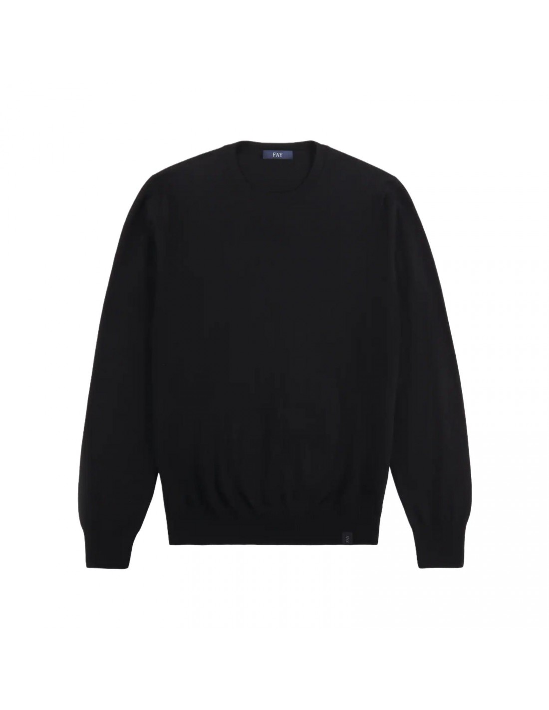 Pull girocollo in maglia rasata di lana merinos. Un essenziale dallo stile sobrio e raffinato, arricchito dall'etichetta con logo Fay applicata sul fondo.