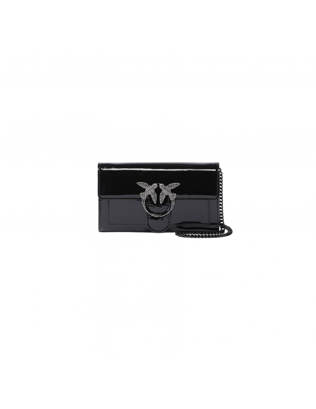 Diamond Cut in metallo smaltato lucido e impreziosito con pavè di cristalli. Il portafoglio dal design a pochette include anche una tracollina sottile, a catena metallica smaltata in tono colore, rimovibile con piccoli moschettoni. L'interno del portafoglio è foderato in polycotton e include una pratica tramezza chiusa con zip oltre a spazi per carte di credito e documenti. Attiva il tuo accessorio PINKO: verifica l'autenticità del tuo prodotto e accedi all'esperienza personalizzata avvicinando il tuo smartphone al ricamo Love Birds che trovi sul retro!