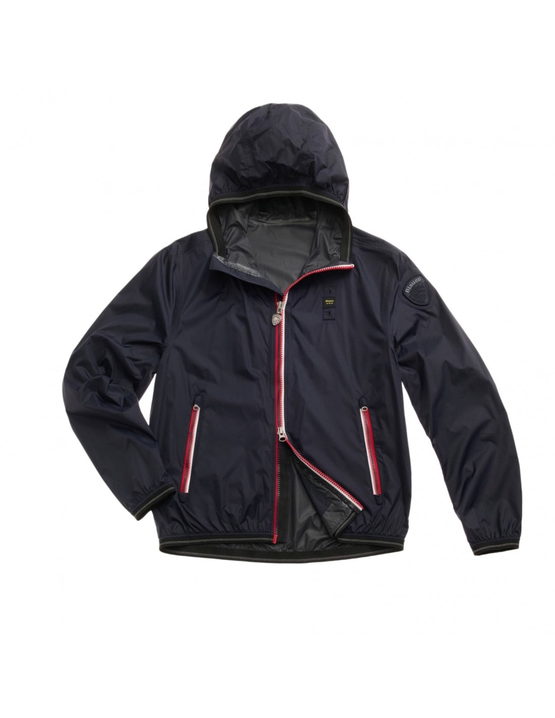 Giacca a vento in nylon confort touch sfoderata con cappuccio fisso. Capo indicato per le fresche serate e per le gite fuoriporta.