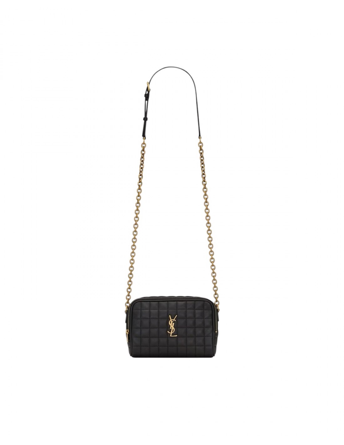 camera bag decorata con CASSANDRE e impunture trapuntate a quadri, e caratterizzata da una tracolla amovibile.