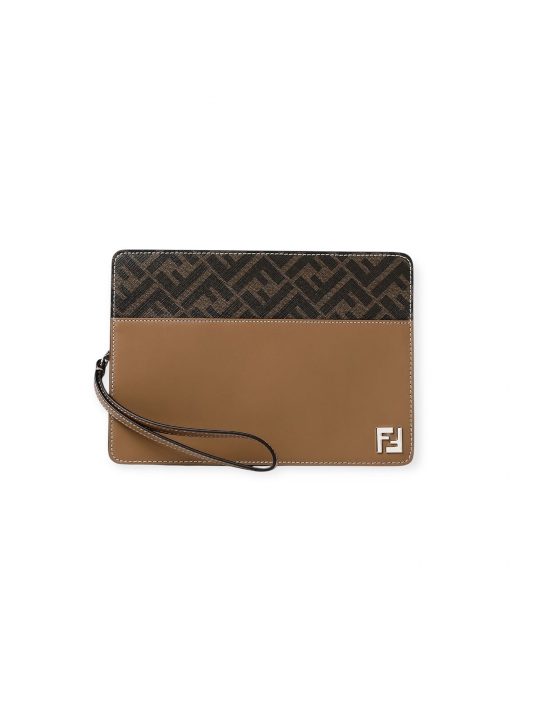 Clutch Standing FF Fendi in tessuto spalmato e pelle.