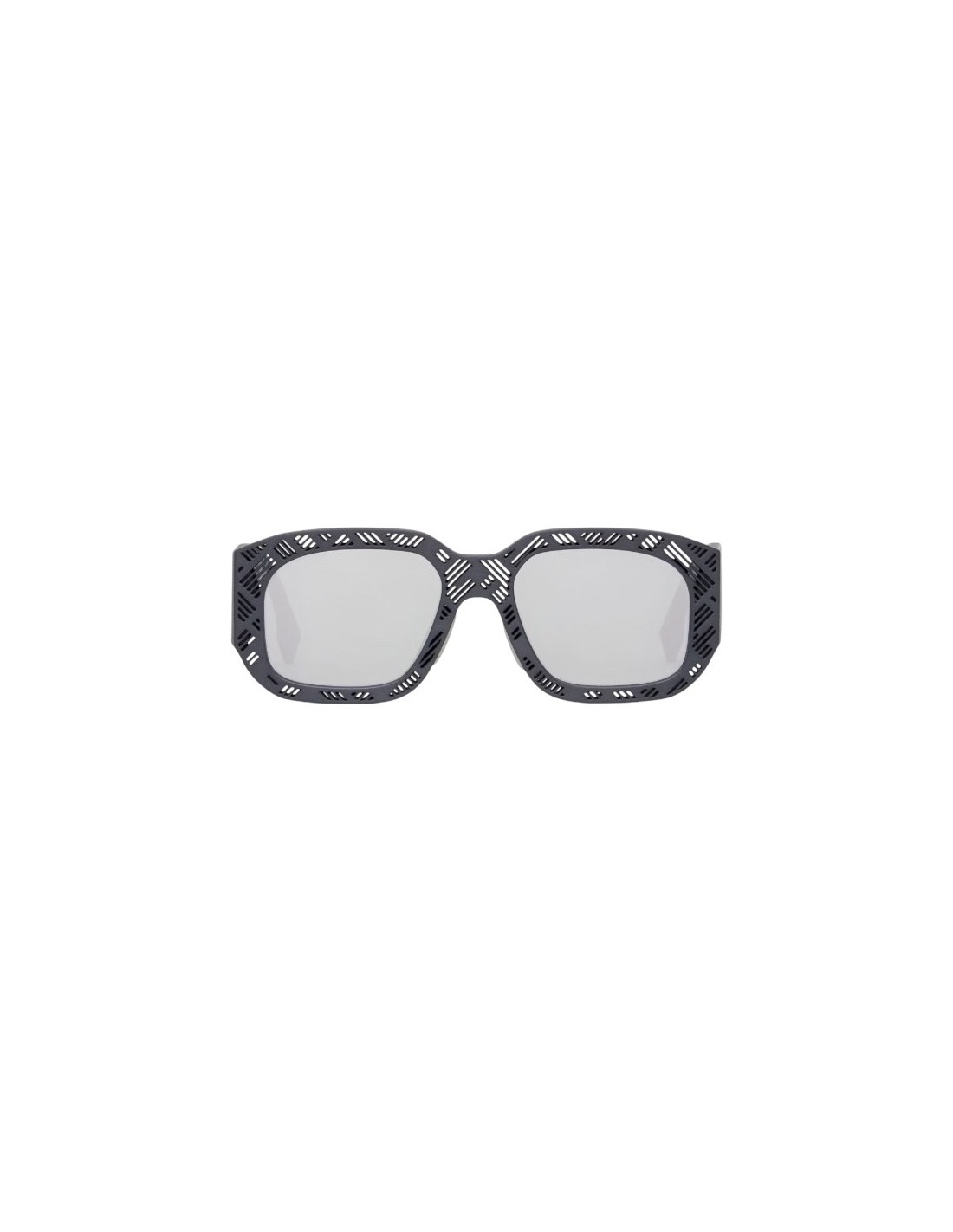 Occhiali Fendi Shadow dalla forma rettangolare. Costruzione in nylon grigio scuro con tecnica di stampa 3D e motivo FF dalla texture a righe su tutta la montatura. Lenti grigie a specchio.