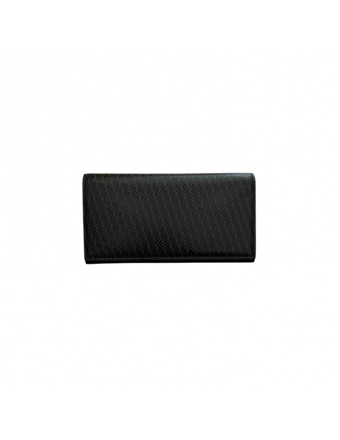 Portafoglio continental. Organizzato con 12 slot portatessera,una tasca con zip, una tasca senza zip. Realizzato in pelle Fendi Shadow di colore nero con il motivo FF dalla texture a righe. Interno in pelle nero.
